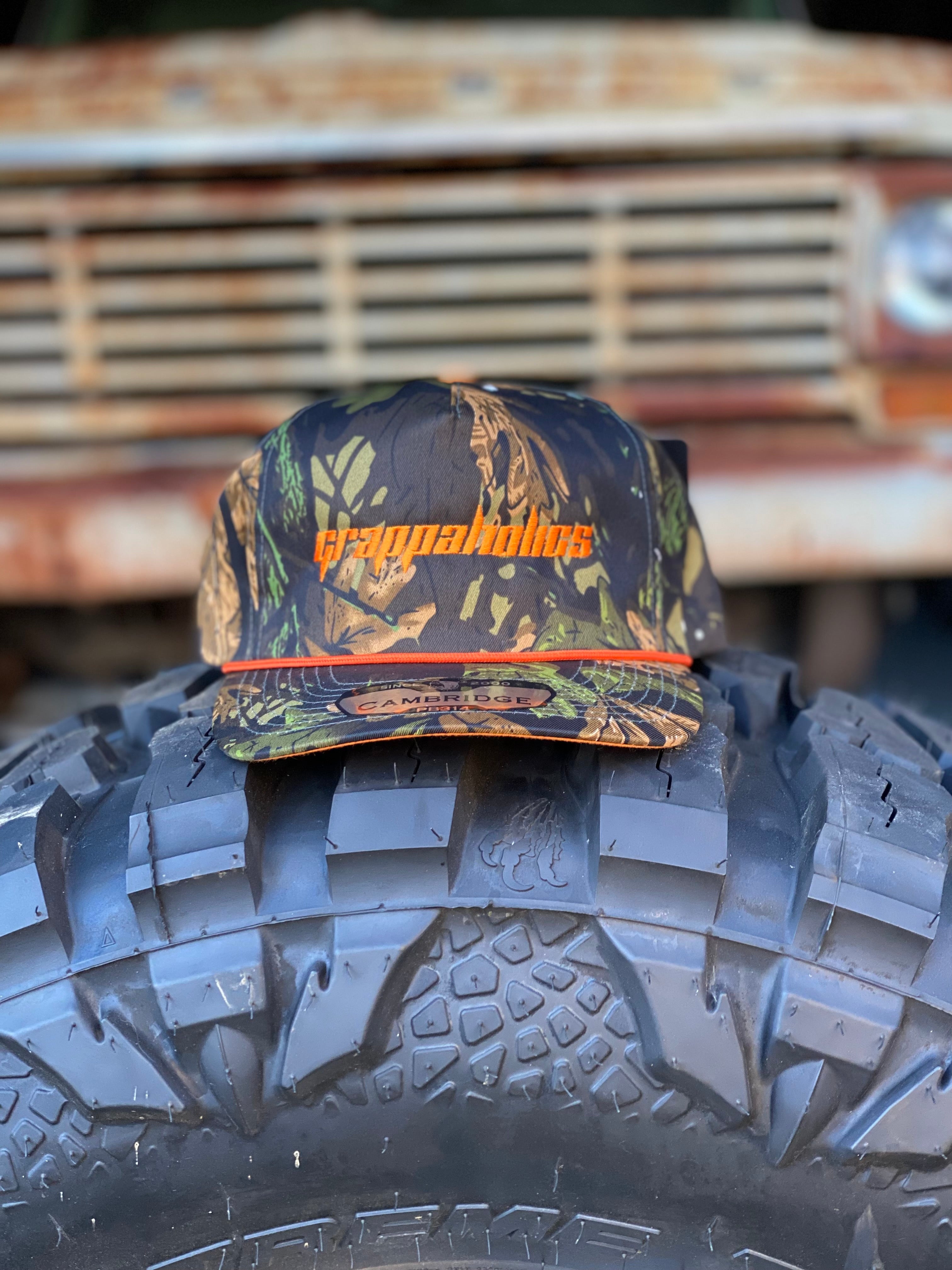 Our camo rope hats with snap back has our classic Grappaholics™ logo embroidered across. One size fits most. Embroidered by a small business in Georgia.